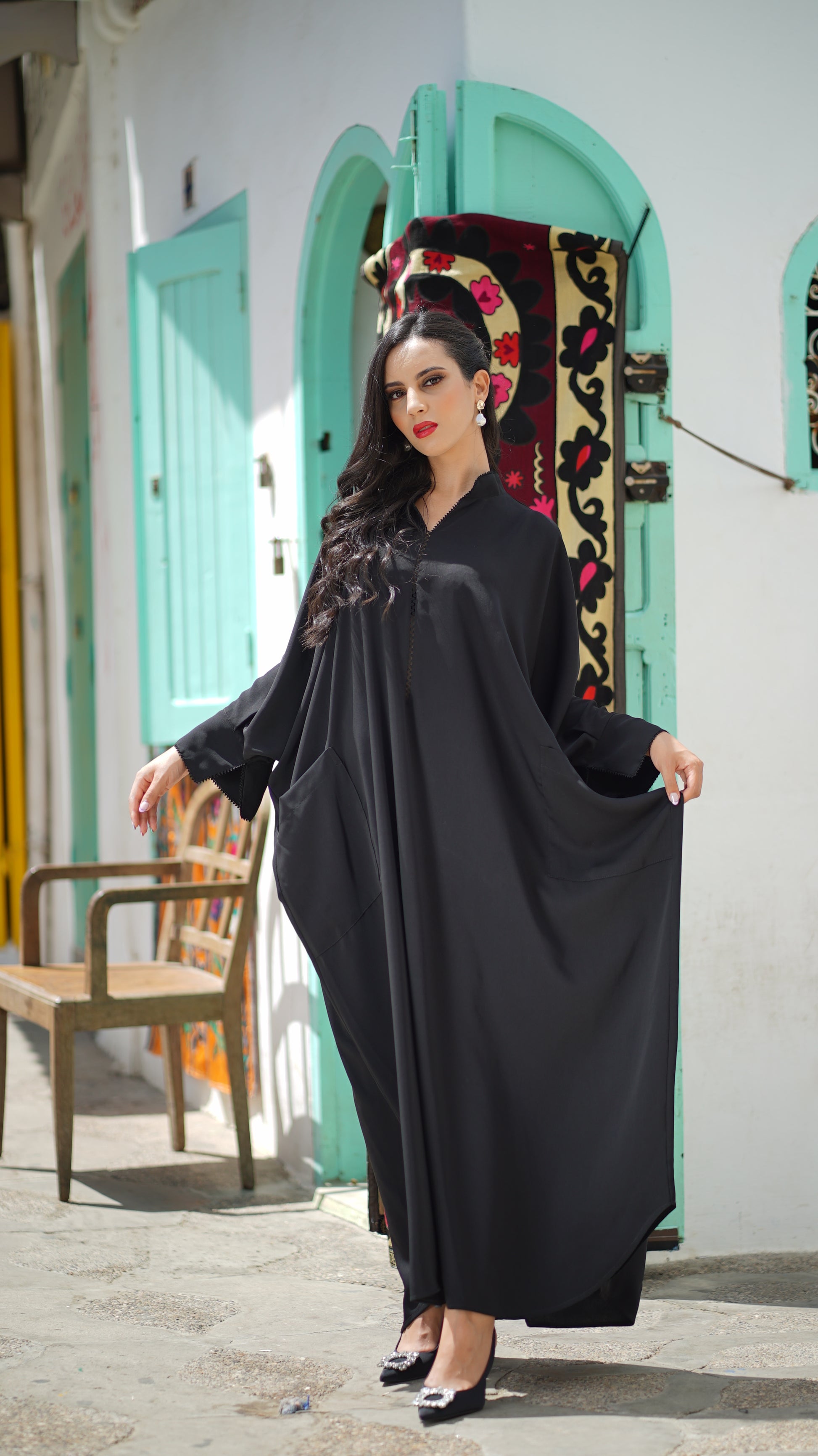 Sa coupe ample, son tissus en crêpe fluide et léger nous offre le confort auquel on tient tant, les détails de la randa, faite mains, que l’ont retrouve sur l’encolure et les manches, lui apporte sa touche gracieusement