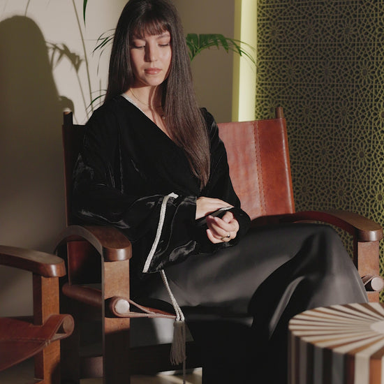 - Composé d’une jupe en drap de soie de haute qualité et d’un kimono en velour demi-soie